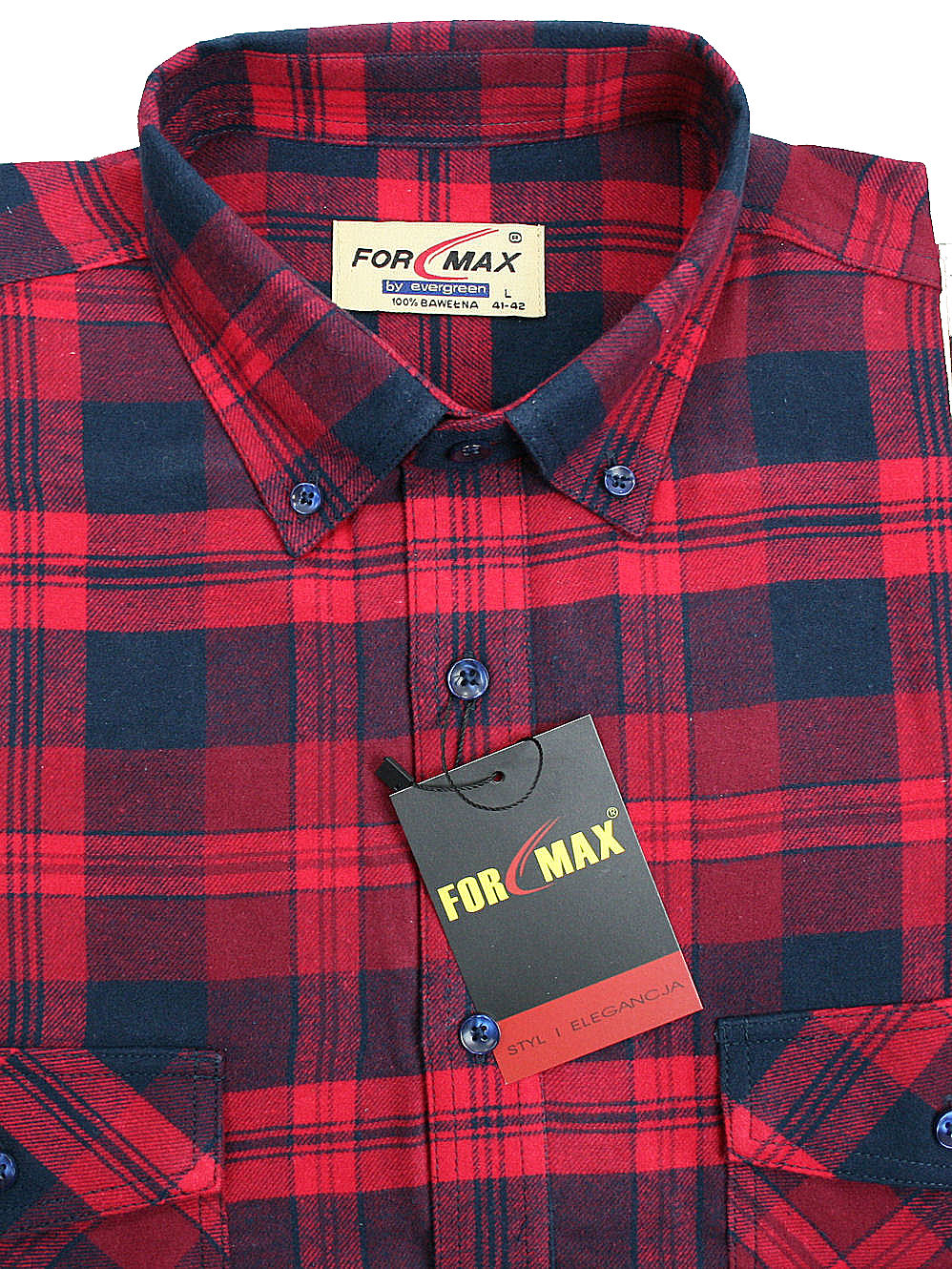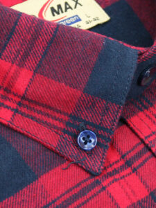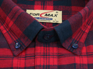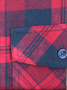 Koszula flanelowa z długim rękawem, sylwetka klasyczna, dół koszuli zaokrąglony. Naszyte dwie kieszenie z patkami, zapinane na guzik. Kołnierzyk przypinany guzikami. Miękka tkanina bawełniana.