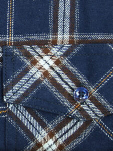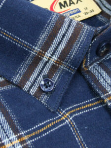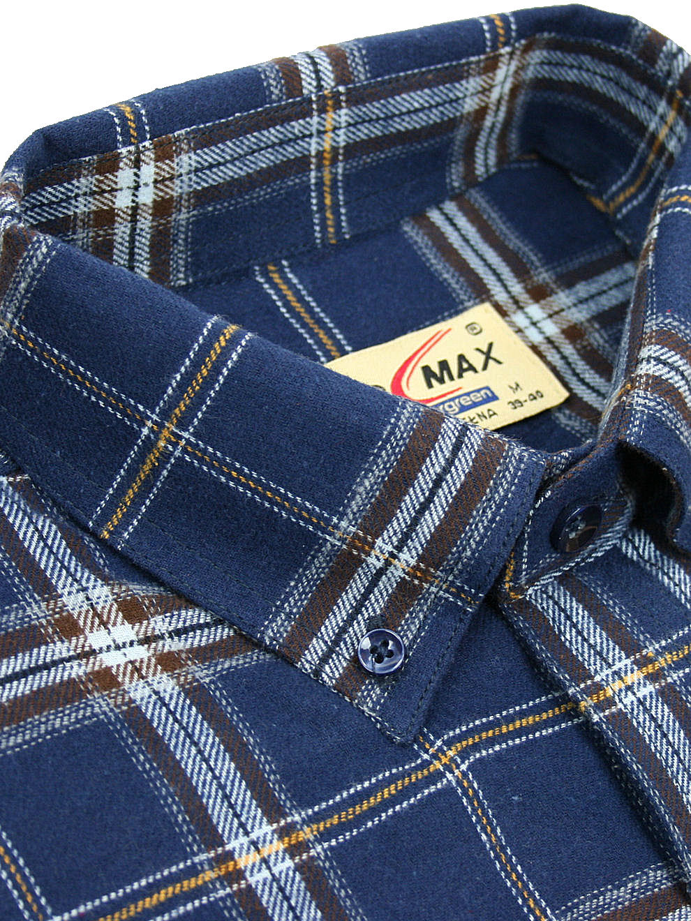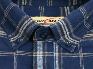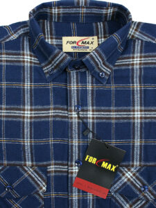 Koszula flanelowa z długim rękawem, sylwetka klasyczna, dół koszuli zaokrąglony. Naszyte dwie kieszenie z patkami, zapinane na guzik. Kołnierzyk przypinany guzikami. Miękka tkanina bawełniana.