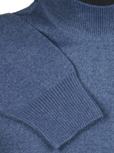 Cienki sweter wełniany, półgolf, rękawy i dół swetra zakończone ściągaczem