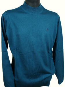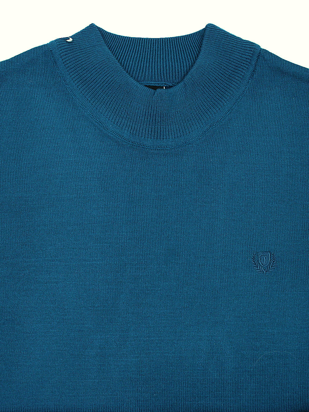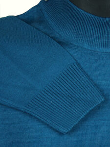 Cienki sweter wełniany, półgolf, rękawy i dół swetra zakończone ściągaczem