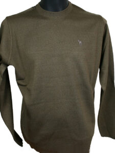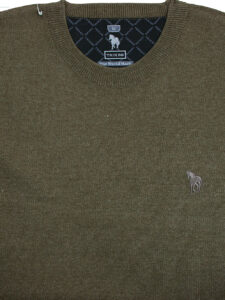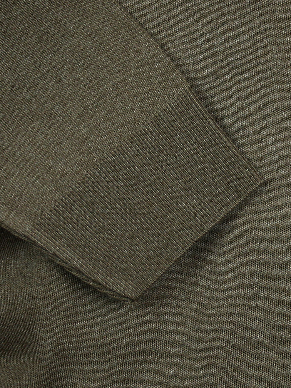 Cienki sweter wełniany, dekolt okrągły niska stójka, rękawy i dół swetra zakończone ściągaczem
