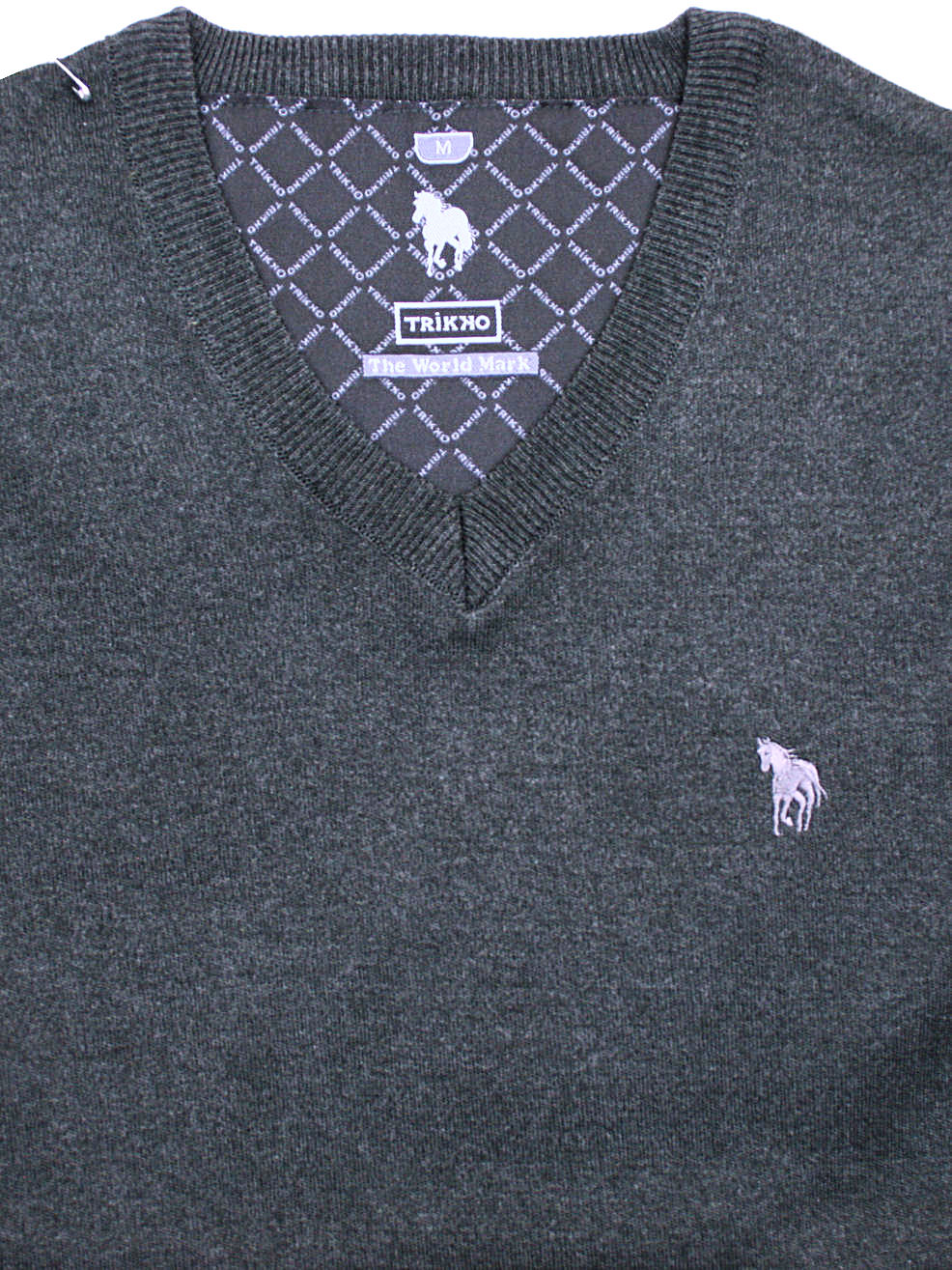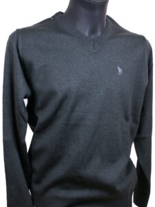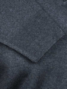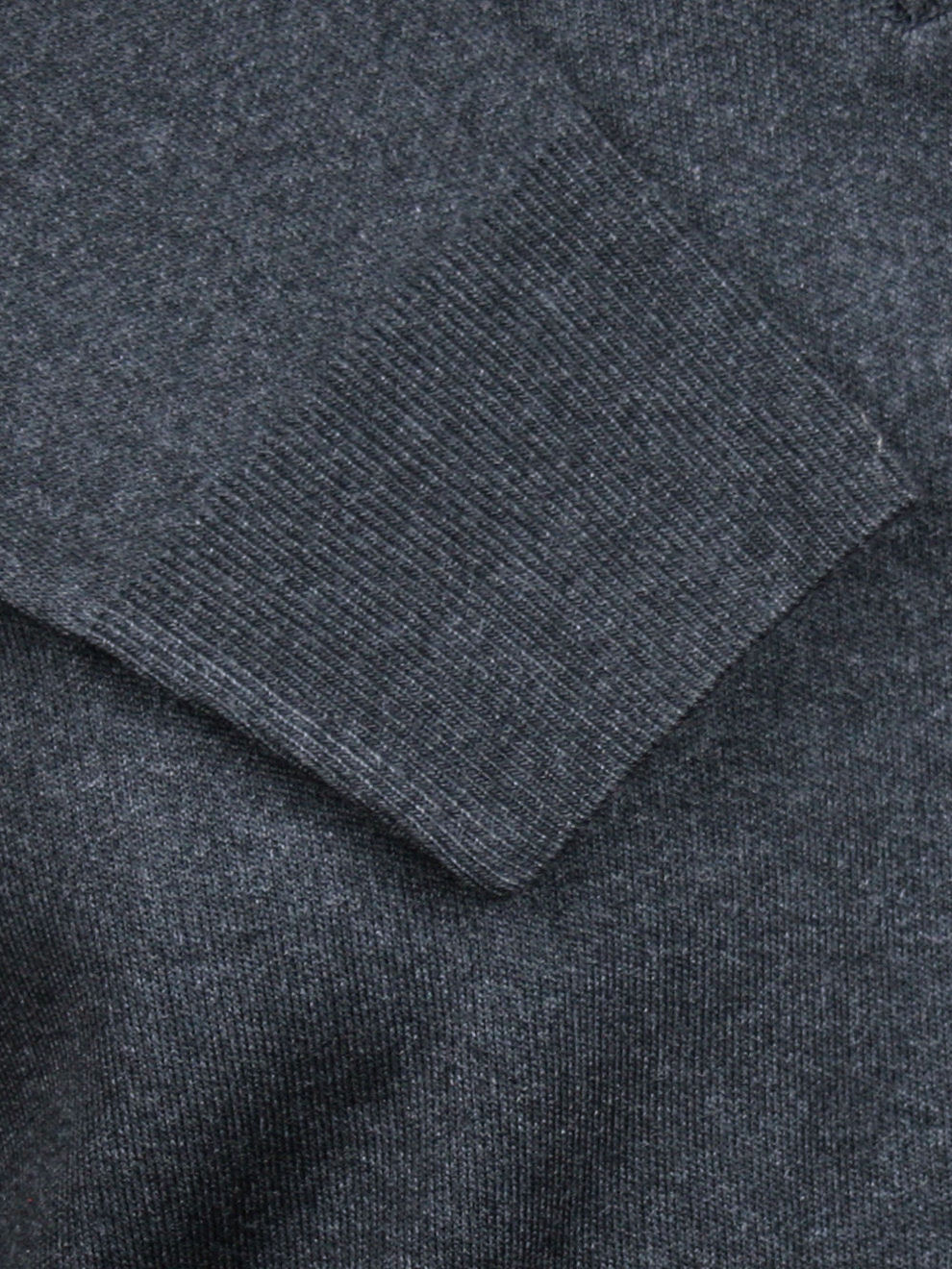 Cienki sweter wełniany, dekolt w serek, rękawy i dół swetra zakończone ściągaczem