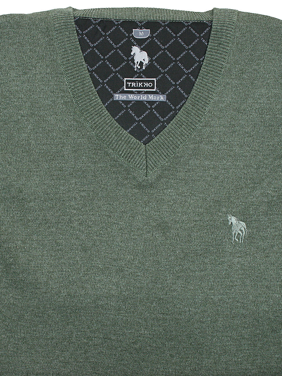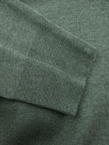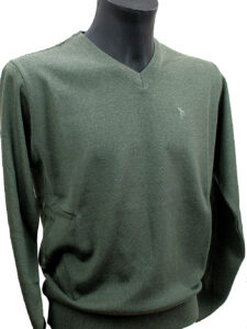 Cienki sweter wełniany, dekolt w serek, rękawy i dół swetra zakończone ściągaczem