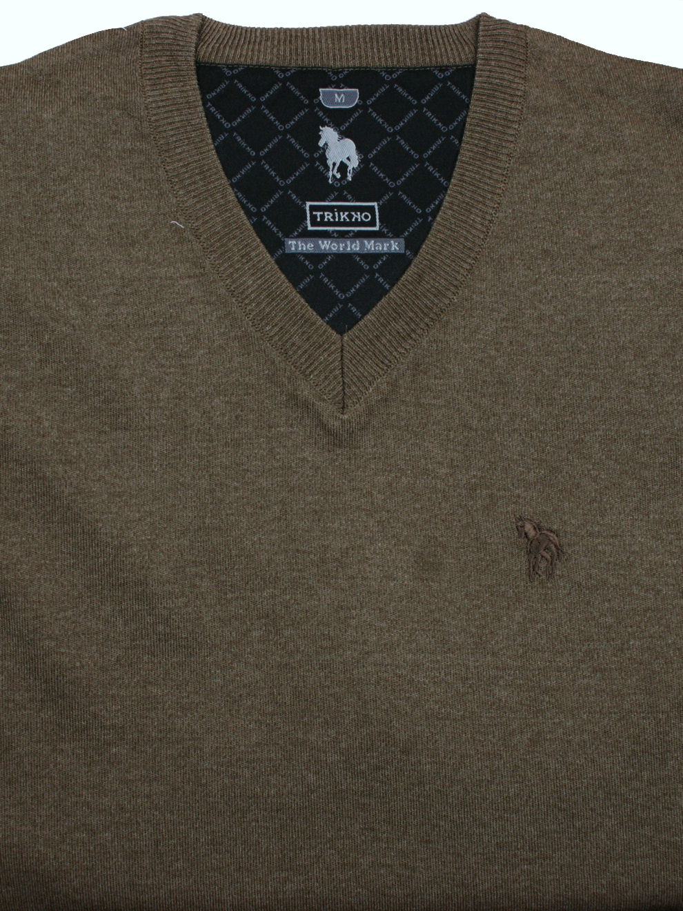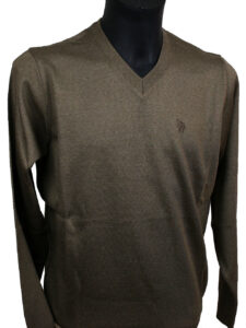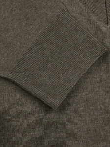 Cienki sweter wełniany, dekolt w serek, rękawy i dół swetra zakończone ściągaczem
